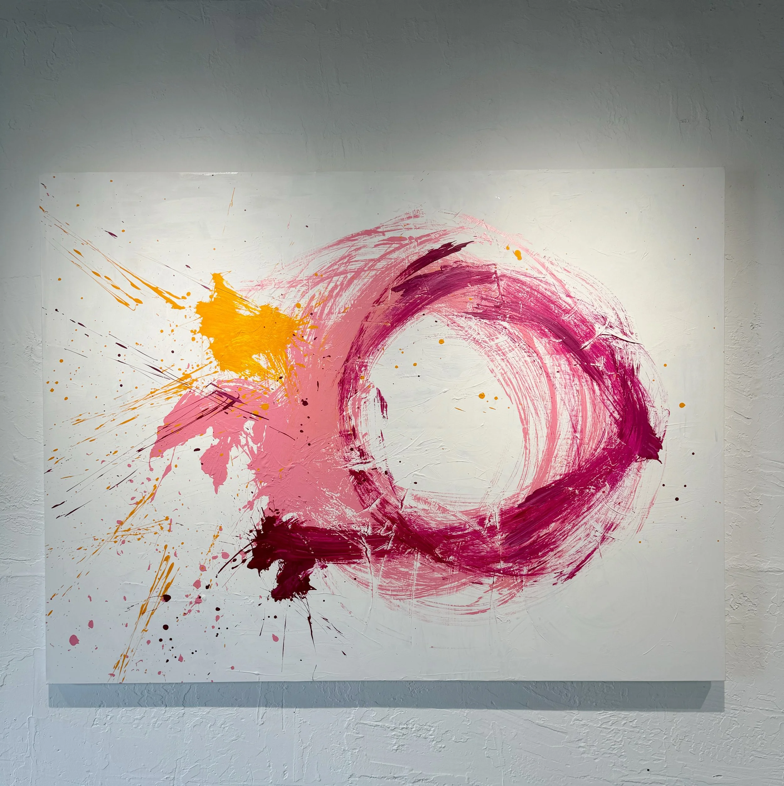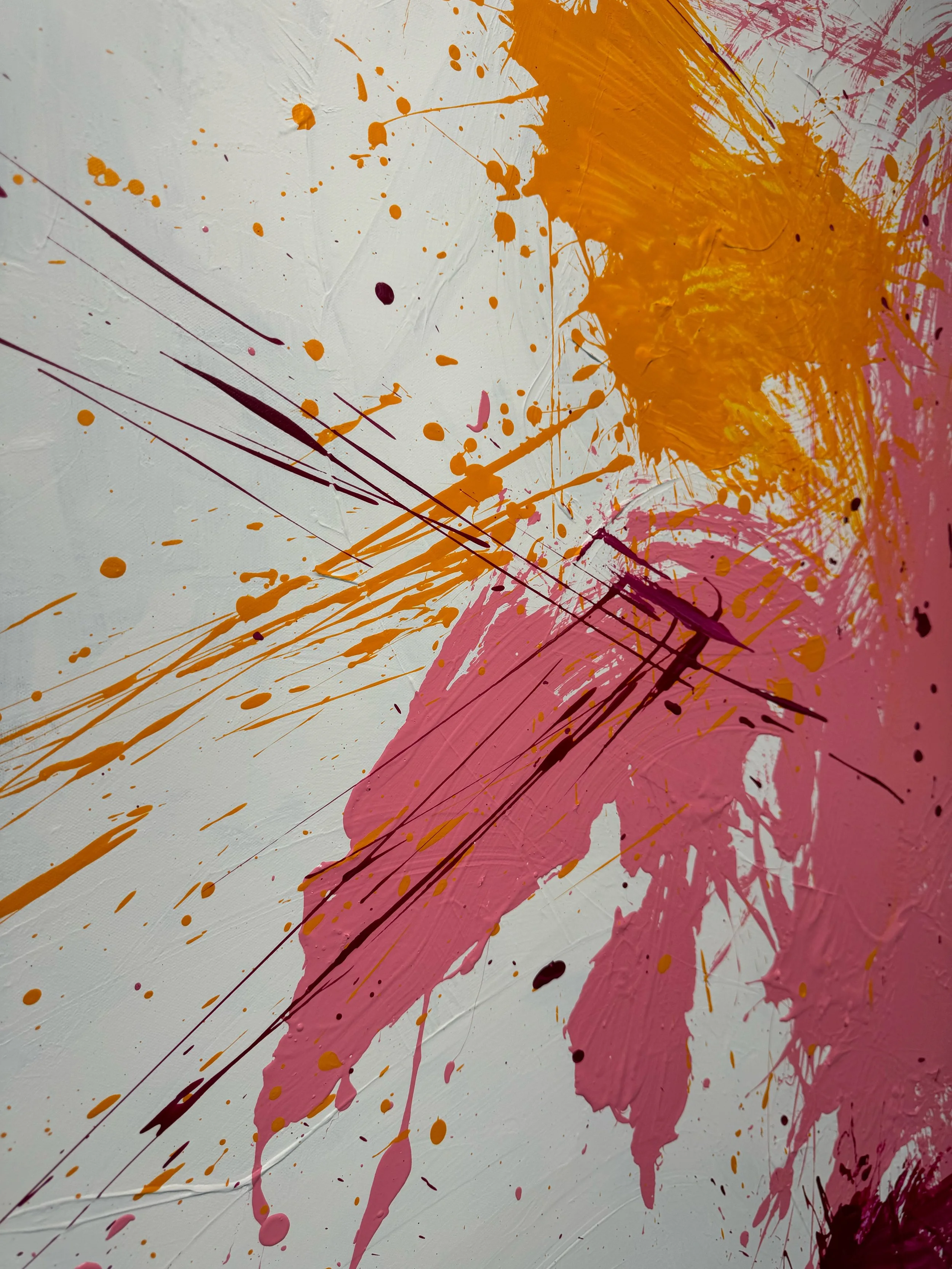MAGENTA, PINK AND MUSTARD YELLOW ON TEXTURED WHITE BACKGROUND 6FT X 8FT, $8000