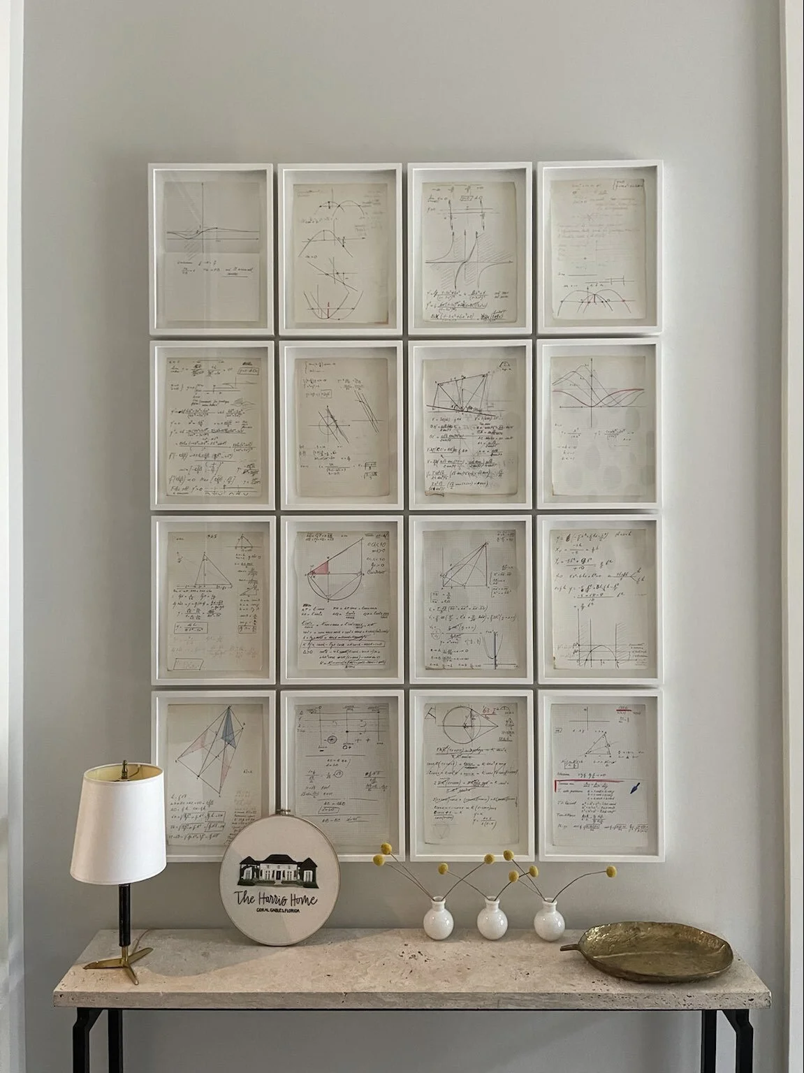 For example, I found a bunch of my father’s old engineering notes and homework, framed them and turned them into art.