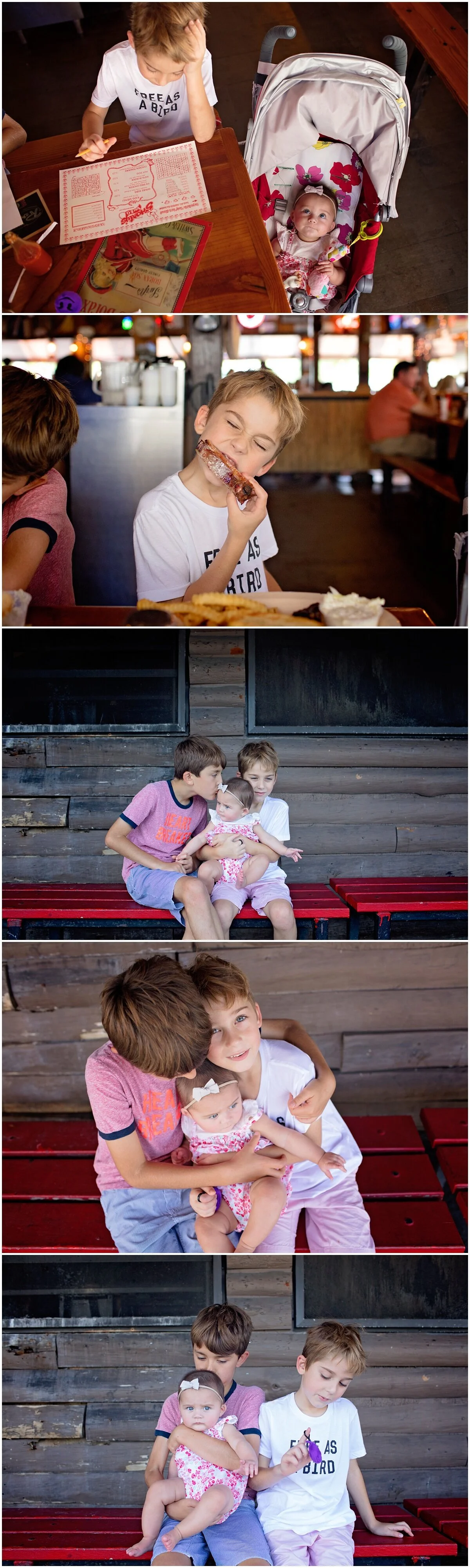 Saturday outings with three definitely take some getting use to, honestly I think it is just getting out of the house with the baby that is the hard part, she requires so much stuff - diapers, bottles, teethers, a stuffed animal, etc. I took the three of the to Shorty's BBQ for lunch and the boys quietly did their word search and then decided to play hangman. It is incredible how long they can entertain themselves with a pencil and piece of paper. Being unplugged isn't such a big thing now, we do it without complaining because that is just how it is. No iPads or phones when we are out as a family, and when no is no long enough they stop asking.