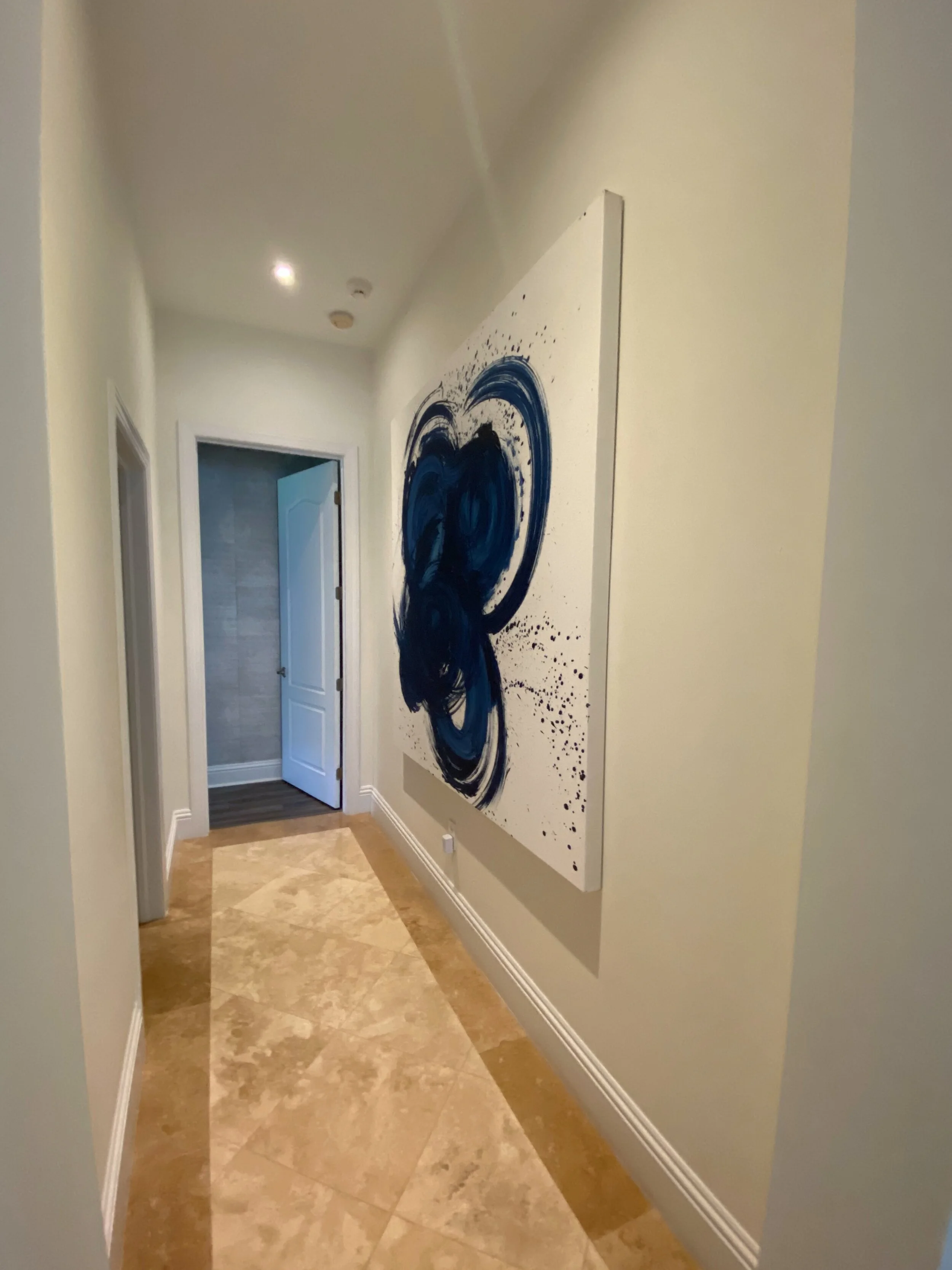 Mop painting is an unconventional artistic technique where I employ a mop instead of traditional brushes to create artwork. This method allows for the creation of large, sweeping circular swirls and dynamic splatters across expansive canvases, infusing the piece with a sense of movement and spontaneity. The scale and physicality of the mop enable me to work on a much larger surface area, resulting in bold, abstract expressions that are often characterized by their distinctive textural qualities and vigorous, fluid lines.